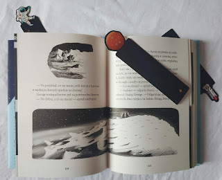 Kolorowa obwoluta mówi nam o czym jest ta lektura, a pod nią kryje się piękna, twarda okładka, która pokryta jest chropowatą powierzchnią. I chociaż zdjęłam obwolutę podczas czytania, gdyż nie chciałam jej zniszczyć to „George i tajny klucz do wszechświata”, ani trochę nie stracił na uroku. Co więcej, książkę przeczytałam w jeden dzień, ale to głównie dlatego, że większość książek o kosmosie wciąga mnie okrutnie. Gdyby jeszcze raz miała czytać tę pozycję (co na pewno się wydarzy) to zdecydowanie będę sobie dawkować lekturę i delektować się nią powoli.